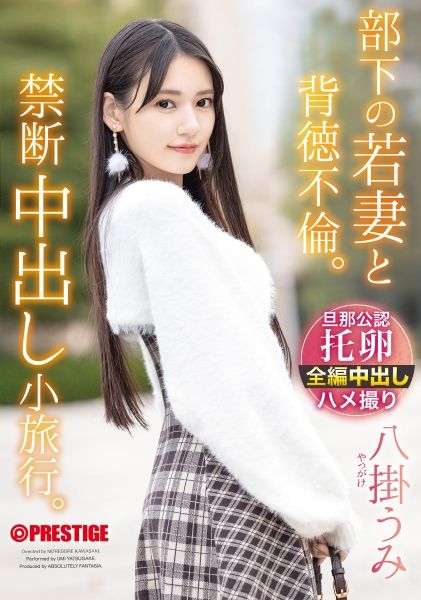 内容 / プレステージ専属女優”八掛うみ”ちゃん、身長160cm、スリーサイズ80−57−85。寝取られ願望の部下から「嫁を抱いてくれ」と頼まれ、清楚な若妻との禁断小旅行が始まる。約束は全てを記録し、必ず中出しすること。最緊張していた若妻も、ホテルに着くなり理性が外れ、恥じらい濃厚フェラで奉仕。身体を強く抱き寄せ、奥深く突き上げるたびきゅっと締め付ける膣内に、妊娠させる勢いで熱い精液を注ぎ込む。